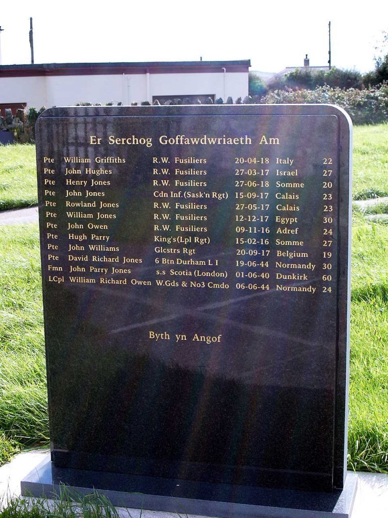 Aberffraw War Memorial is located outside St Beuno’s Church, and appears to be a very new monument, so I will – when time permits – find out where the original war memorial is or was, and find out if there are further memorials in the chapels and within the Church graveyard.