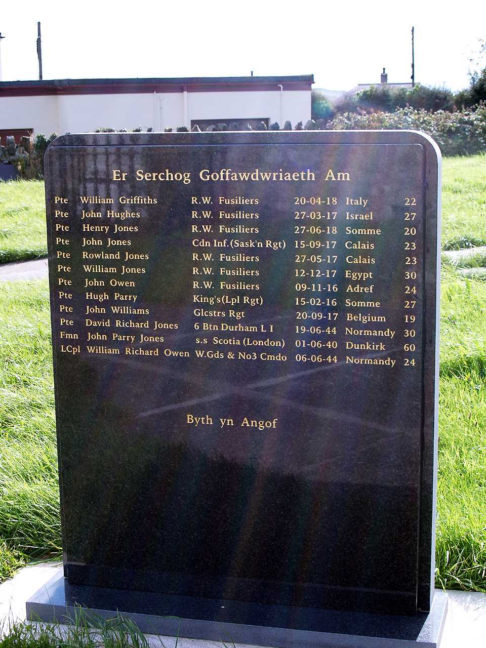Aberffraw War Memorial is located outside St Beuno’s Church, and appears to be a very new monument, so I will – when time permits – find out where the original war memorial is or was, and find out if there are further memorials in the chapels and within the Church graveyard.