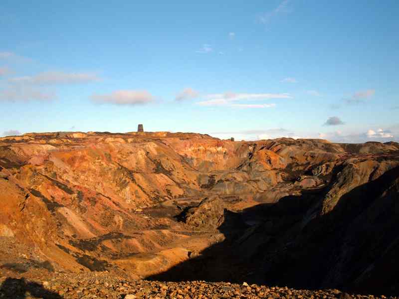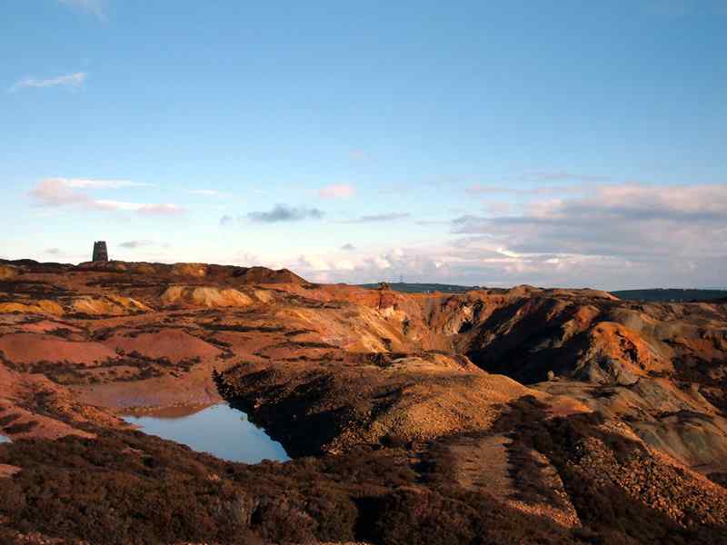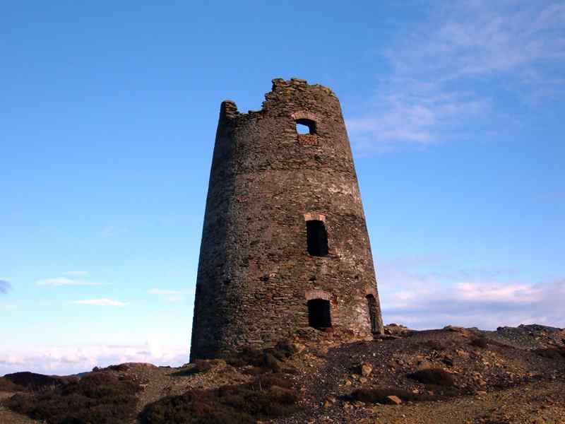 The colours of the waste still on Parys Mountain left from the copper mining are remarkable. At the time of the working mine, plant life was destroyed for miles around by the toxic dust and sulphur gas from the mines fires. There is a mill still standing, that I believe originally boasted 5 vanes, and that the ruin is the only mill used to drive mine pumps still in existence.