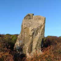 Located in a field not far from the village of Llandyfrydog on Anglesey. A standing stone to which several myths are attributed. The most popular – because of the shape of the stone – is that a man robbed a church. Throwing his bag of stolen property