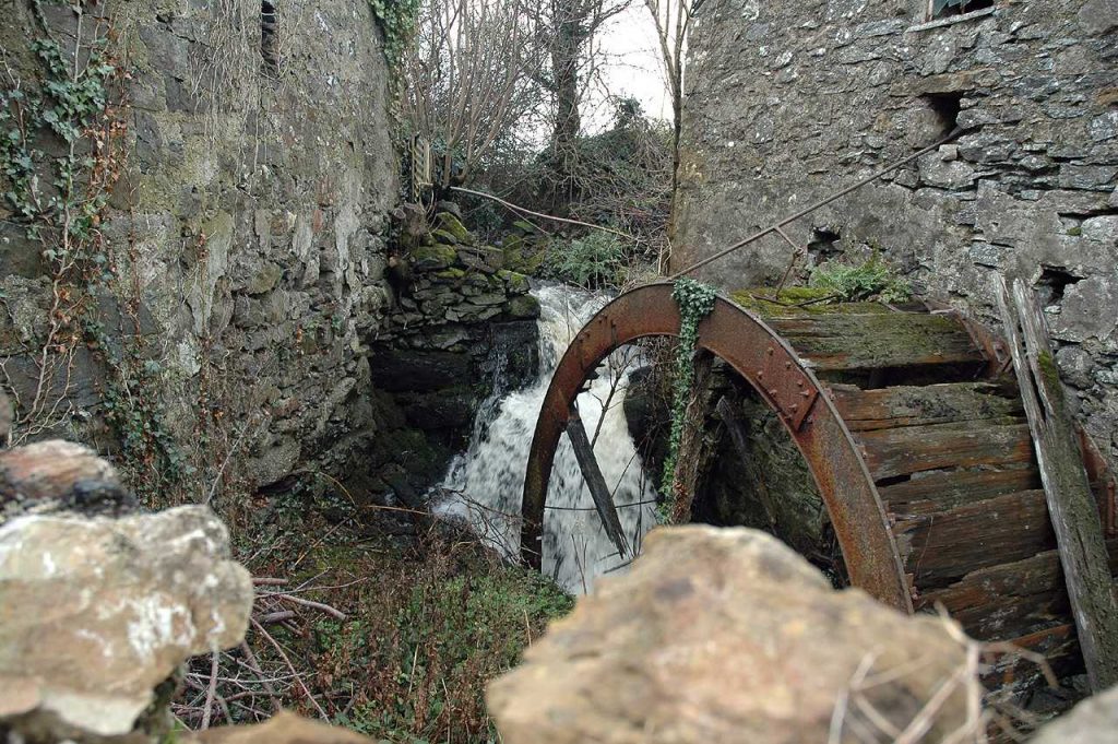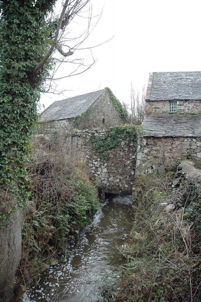 Anglesey, near Lllangaffo, Felin Bodowyr Water Mill, Kiln (on the left) and Mill on the right.