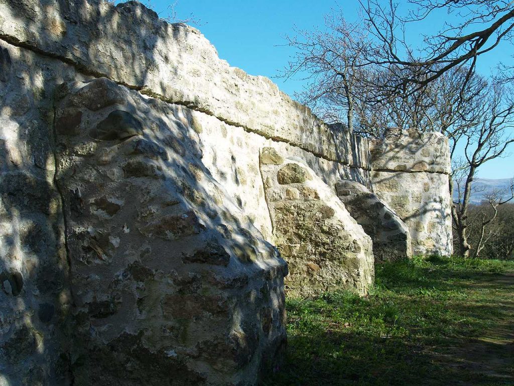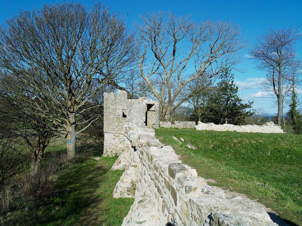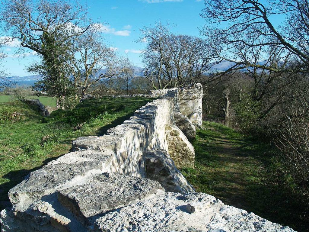 Castell Aberlleiniog is the site of a Motte and Bailey, built in the 11th century on behalf of Hugh d’Avranches, the 1st Earl of Chester. Originally it would have been a wooden structure, now long since disappeared, and replaced during the Civil War by a stone structure consisting of a surrounding wall, and archers towers. Even later, during the World War, it was used by the Home Guard. It is impossible – due to the undergrowth – to determine what remains may lie in the centre of the castle.