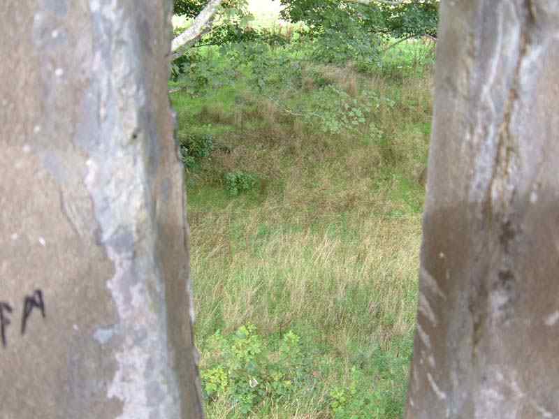 The easiest way is to drive from Beaumaris into the town of Llangoed. Park your car in the car park near the square. There you will see tourist information plaques. Walk down the concrete path (approx 2 metres wide) that runs parallel with the car park. After about ten minutes you will see to your left a water treatment works. Turn towards it crossing the tiny bridge, and then turn to your right. Keep to the outside of the waterworks, and with the fence on your left and the river to your right, walk about 100 yards until you reach a very overgrown field. Looking towards your right of centre you will see a small wood. Head for the wood, and gain access to the field by whichever route you think is best. I walked through the gap between the two large trees. Walk to the top right of the mound-like field and you will see the Motte and Bailey in front of you. Well worth a visit, but view it from a distance, the site is dangerously unstable. Under no circumstances would I recommend anyone going up to the top of the mound.