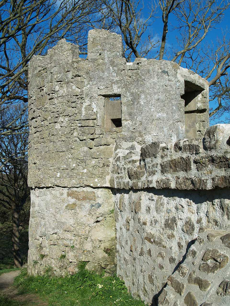 Anglesey, Llangoed, Castle Aberlleiniog, strengthened walls and tower