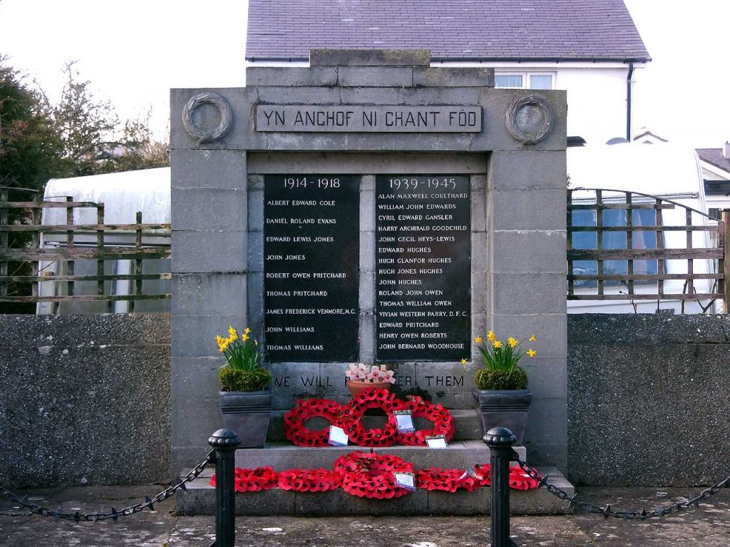 Cemaes Bay War Memorial on the island of Anglesey is quite difficult to see as it is directly behind a bus stop. That said, it is a lovely, well-kept memorial to the wonderful men that paid the ultimate price for our freedom during WWI and WWII.