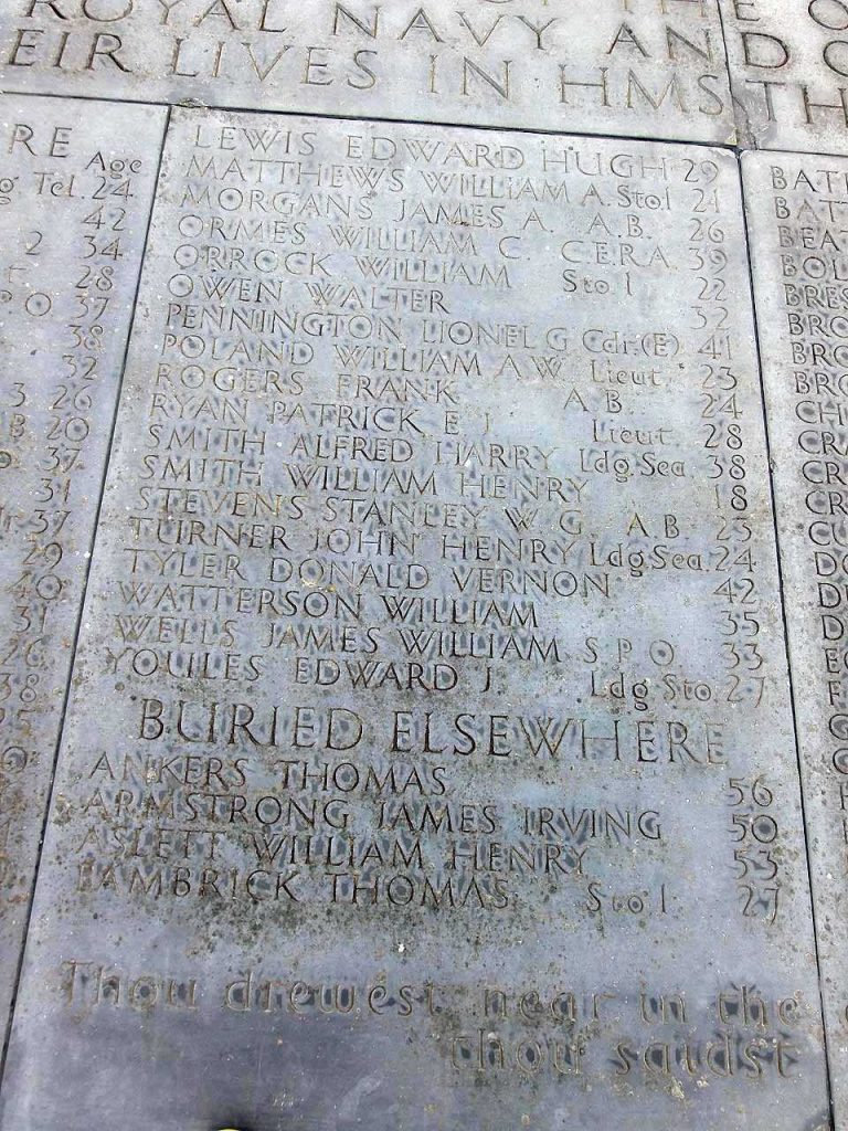 Holyhead – HMS Thetis Memorial, Panel 1 Casualties Names Holyhead – HMS Thetis Memorial, Panel 2 Casualties Names Holyhead – HMS Thetis Memorial, Panel 3 Casualties Names Holyhead – HMS Thetis Memorial, Panel 4 Casualties Names Holyhead – HMS Thetis Memorial in 2005
