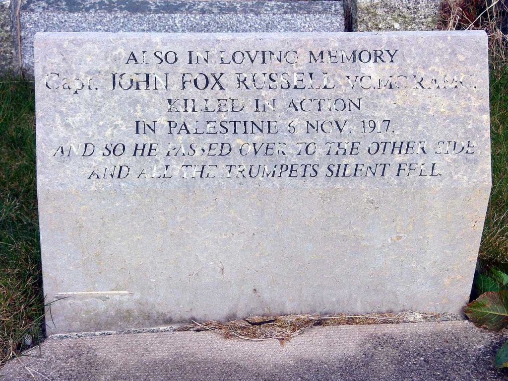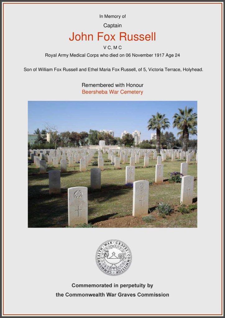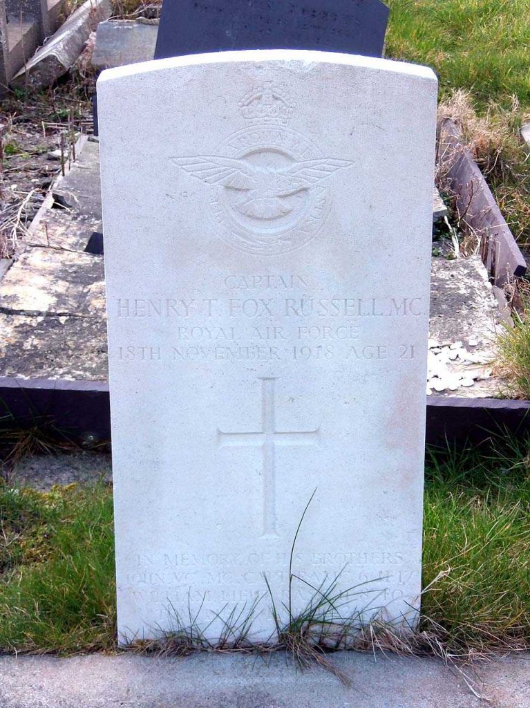 This is the final resting place of one of Holyhead’s greatest World War One (WWI) heroes, Henry Thornbury Fox-Russell, who was awarded the Military Cross and is buried here. On his grave is also a memorial to his brother John Fox-Russell, awarded the Victoria Cross (posthumously) and earlier the Military Cross, actually buried in Palestine.