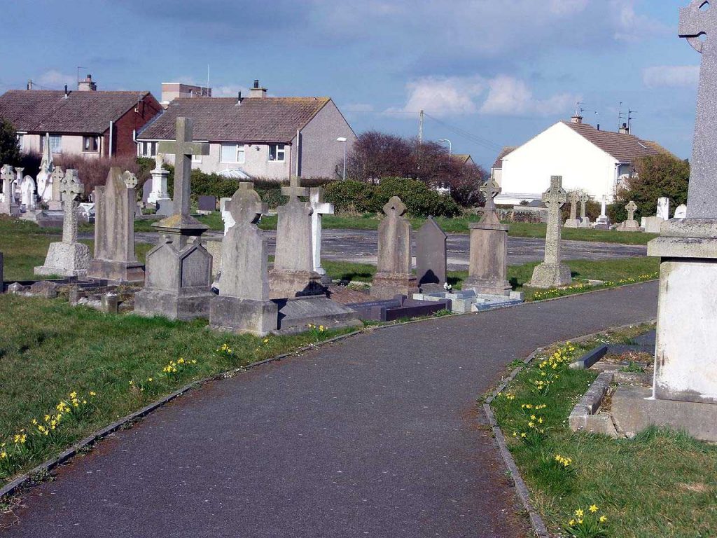 Anglesey, Holyhead, St Seiriol’s Church before demolition. St Seiriols Churchyard and the space where the Church once stood.