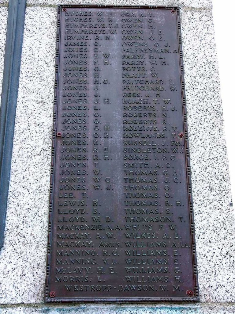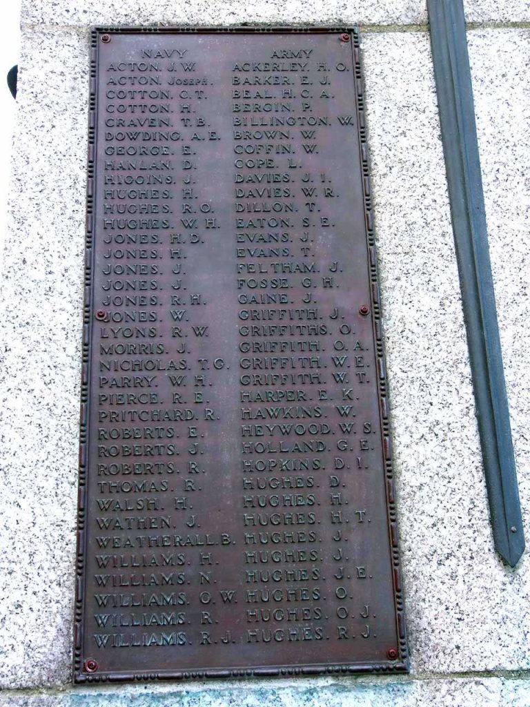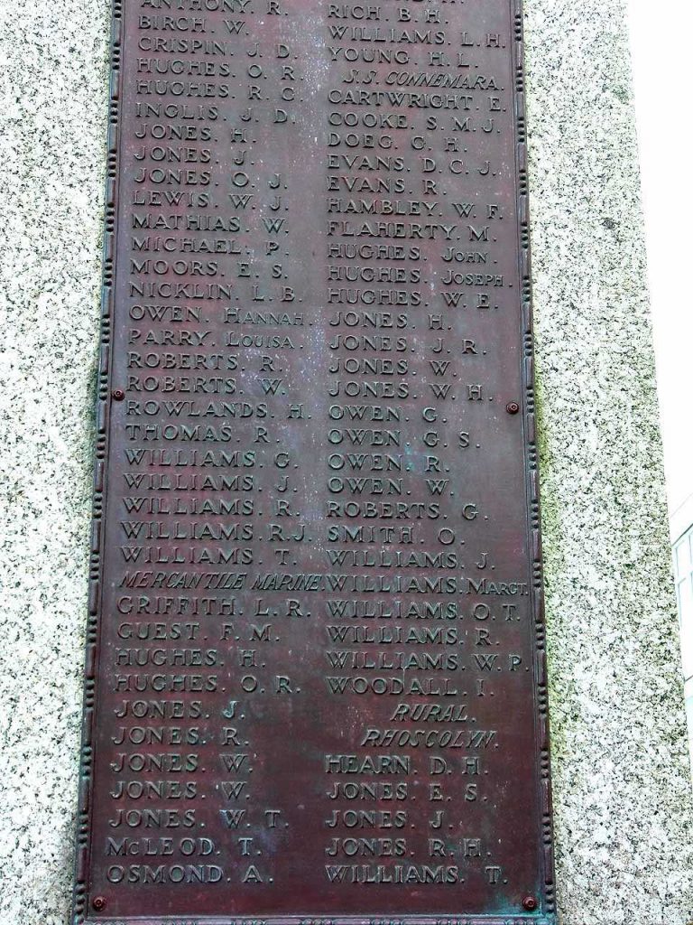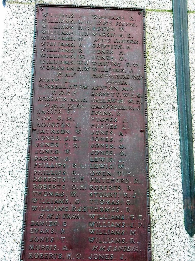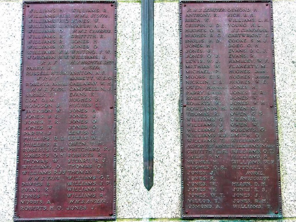 The photographs of the plaques listing Holyhead’s men and women that gave their lives during World War One (WWI) and World War Two (WWII) below are taken from the main War Memorial.