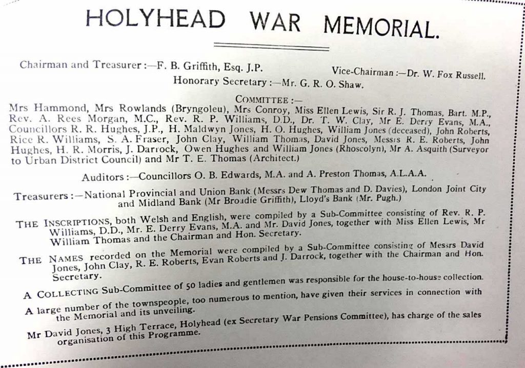 At the end of WWI villages, towns and cities across Great Britain wanted to remember the millions of our people that had paid the ultimate price for our freedom, and Holyhead was no different.