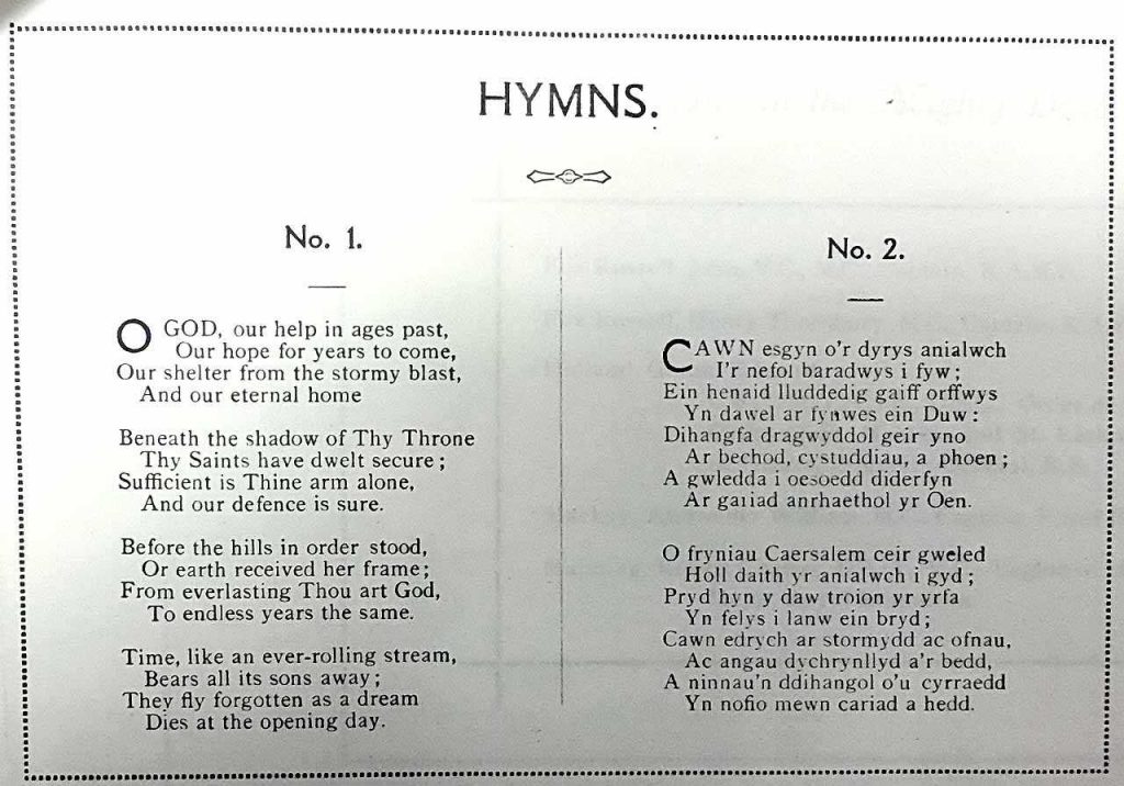 When they all joined in to sing the two chosen hymns – one in english and the other in welsh I doubt there was a dry eye in the square. The hymns chosen were ‘O God our help in ages past, our hope for years to come’ and ‘Cawn esgyn o’r dyrys anialwch, i’r nefol baradwys i fyw’ which roughly translates as: