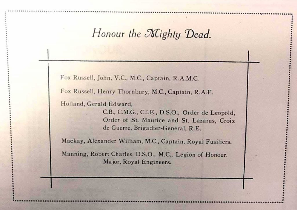 There were casualty lists to compile and the responsibility for their being complete must have been a great weight on the shoulders of the seven members of the subcommittee concerned. Other tasks concerned auditors, treasurers, fundraisers, program sellers, and inscription authors.