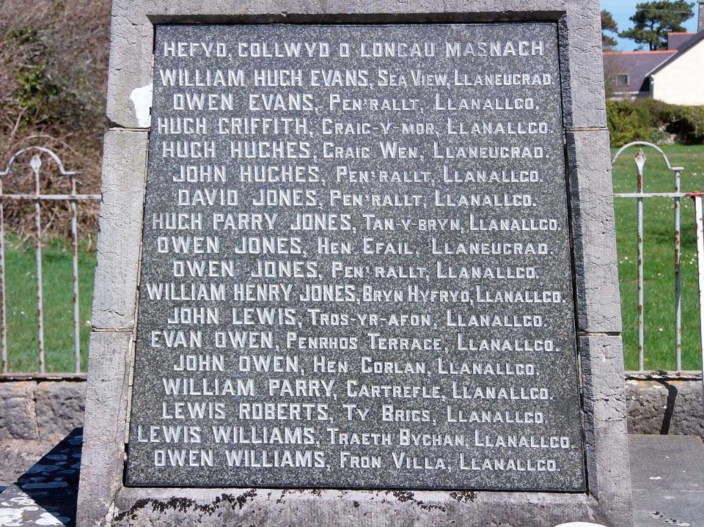 Many of the men on Marianglas War Memorial are also on the Moelfre War Memorial.