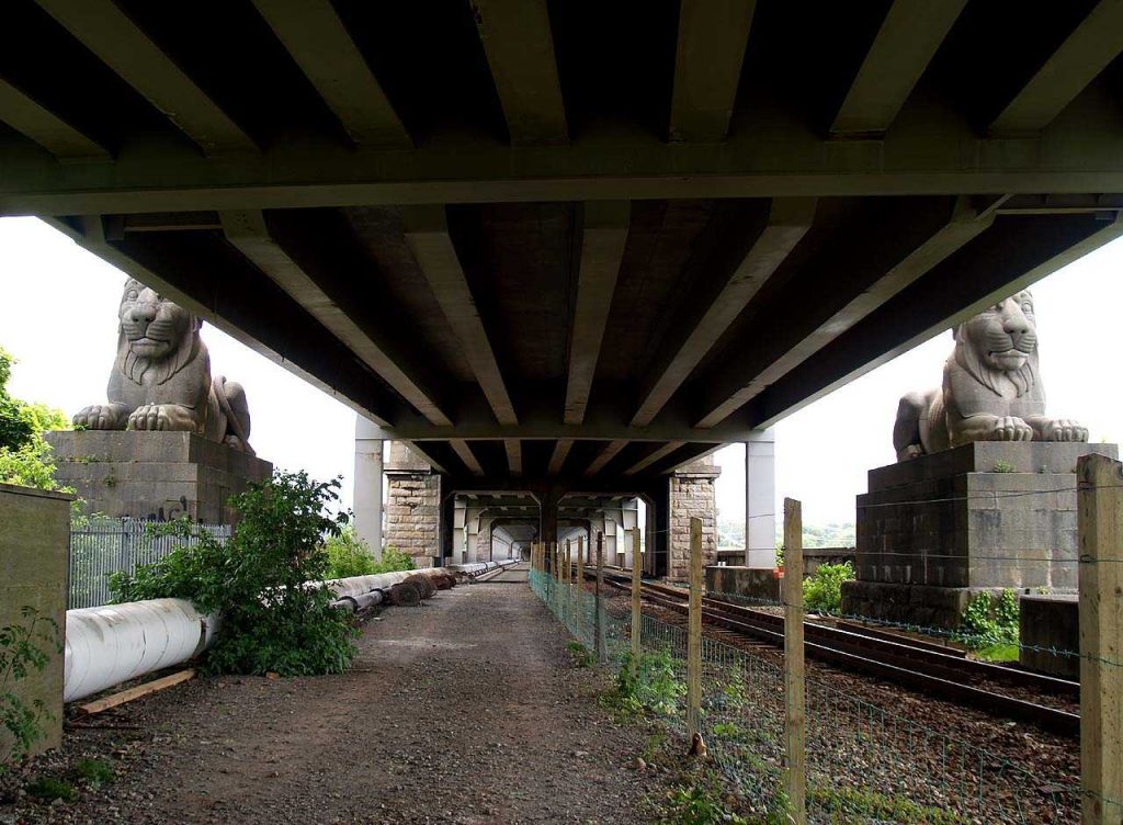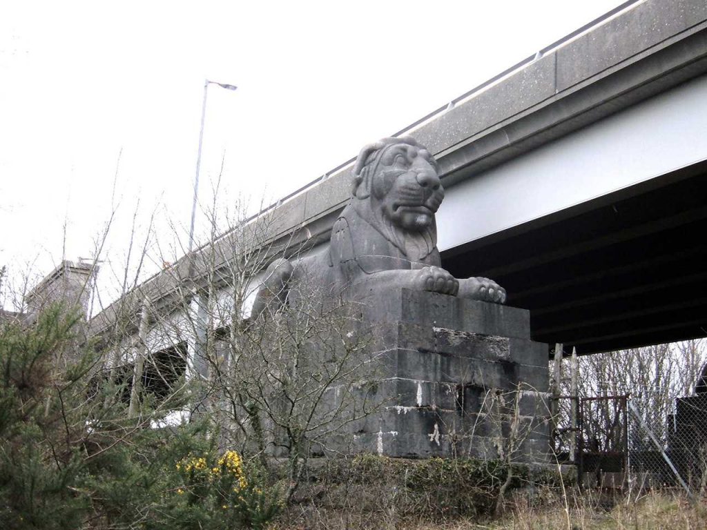 Four large stone lions were sculpted by John Thomas of Gloucestershire in 1848, and placed two at each entrance to the tubular bridge, making four in total. John Thomas was also the architect who designed the north and south fronts of the House of Commons. The lions are 25 foot long and weigh 80 tons each. The lions are still there, and I have taken some photographs of them – shown below.