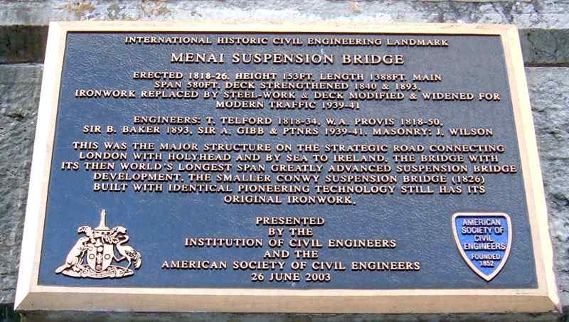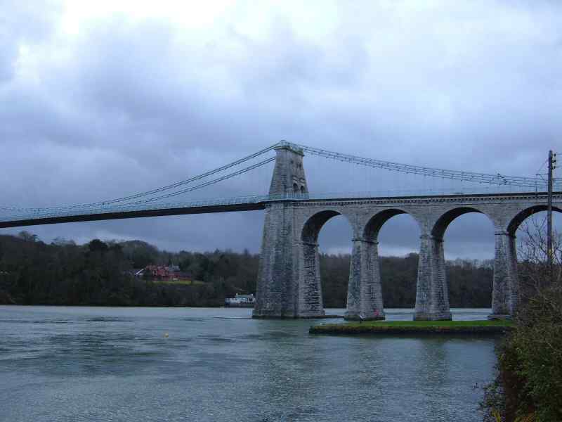 This bridge is known as Menai Bridge. It was the first iron suspension bridge of its kind in the world, and was probably Telford`s most acclaimed achievement, yet it is only fair to say he would have received a lot of assistance from William Alexander Provis, who was the resident engineer.