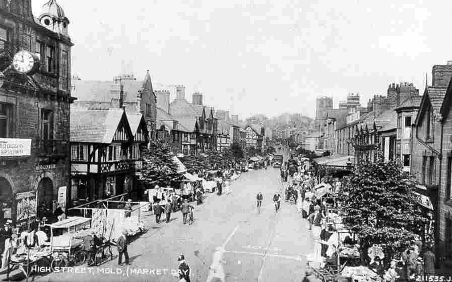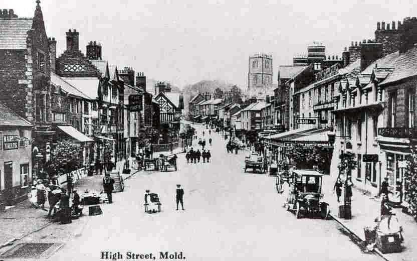 Mold was, and to a lesser extent still is a busy market town. No surprise then that there are lots of old photos of the high street.