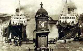 In 1880, extensive redevelopment of the harbour at Holyhead was completed. It included docking facilities that put passengers directly onto the rail platform, a wonderful hotel, and large cargo sheds. It was opened in 1880 by the Prince of Wales, and a harbour clock was erected to commemorate the event.