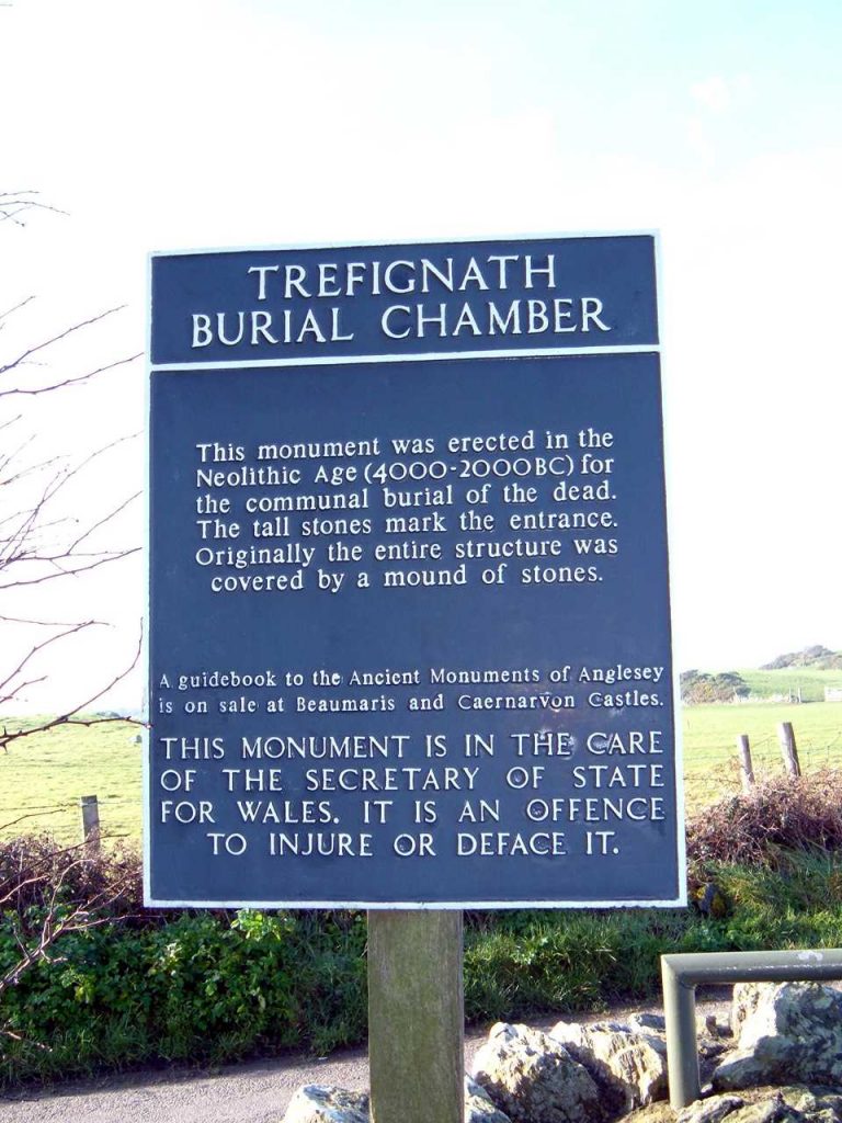 Trefignath burial chamber CADW sign
