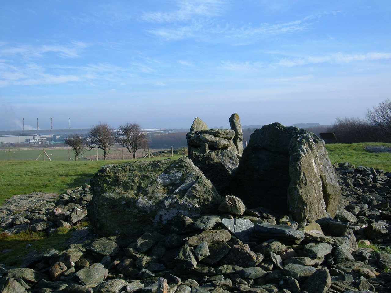 Trefignath burial chamber view of Anglesey Aluminium